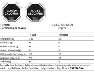 Caramelo en polvo, sabores: uva, cereza y mora azul