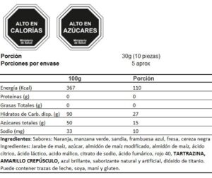 Gomitas ácidas con forma cubica con sabor a: naranja, sandia, cherry, arándano, frutilla y manzana verde