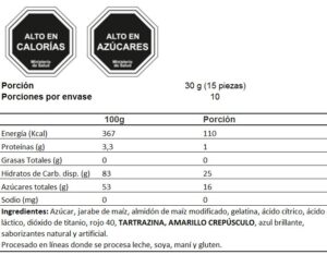 Caja formato video box con 99 grs de gomitas ácidas en forma de gusanos, sabores mixtos: limón, naranja, manzana verde, frambuesa azul y cereza negra.