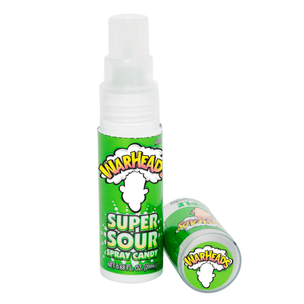 Parece un remedio para la garganta, pero no! Es otra genialidad de Warheads! Un Spray ácido que te hará girar la cabeza! Prueba este sabor manzana…si te atreves!